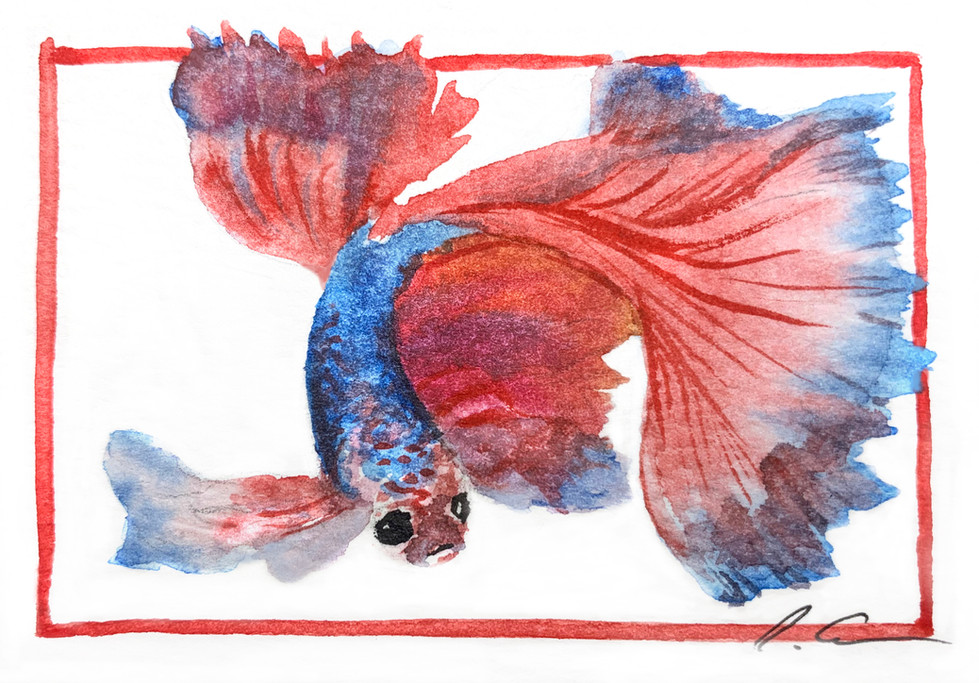 Vibrant and lively fish paintings with a variety of colors and flowing fins, capturing the beauty of underwater life.